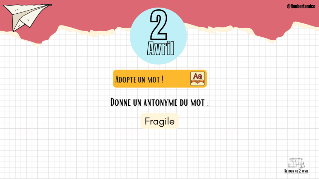 Chaque jour, un mot est mis à l’honneur. Trois exercices peuvent être proposés :